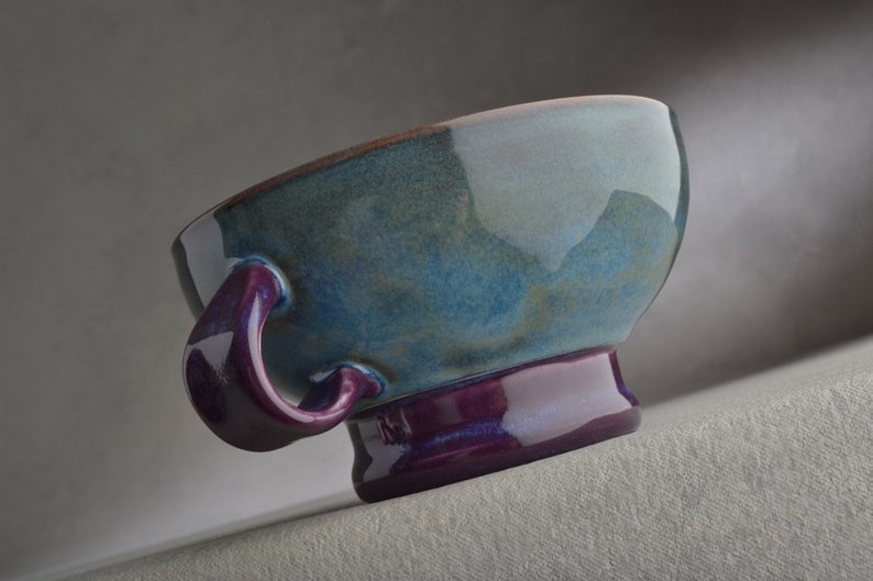 Dottie Shaving Bowl Made To Order Mottled Blue Purple Lather Bowl With Handle by Symmetrical