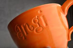 Your name is stamped into the clay allowing the transparent glaze to pool in the recesses.